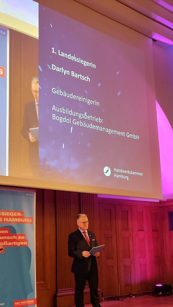 Badawi Salah gewinnt die „Deutsche Meisterschaft“ und wird nach seiner erfolgreichen Ausbildung zum Gebäudereiniger-Gesellen bei Bogdol Bundessieger im Gebäudereinigerhandwerk!
